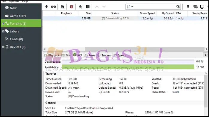 - Resume cepat transfer terputus, RSS Downloader dan dukungan tanpa pelacak (DHT Mainline)